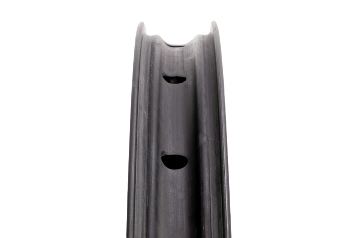 - Angle-drilling ensures a perfectly straight spoke path from rim to hub flange for increased durability.